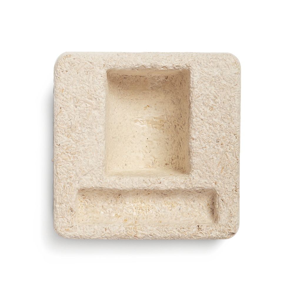 Mushroom-based packaging just might be the replacement for EPS (styrofoam) we’ve been searching for. To make mycelium foam, the vegetative roots of mushrooms are grown as a natural glue around agricultural waste, usually from hemp, kenaf, or flax. The result is a completely renewable, home-compostable packaging material with an awesome, earthy texture to it. It’s a delightfully weird packaging option and we particularly love it.